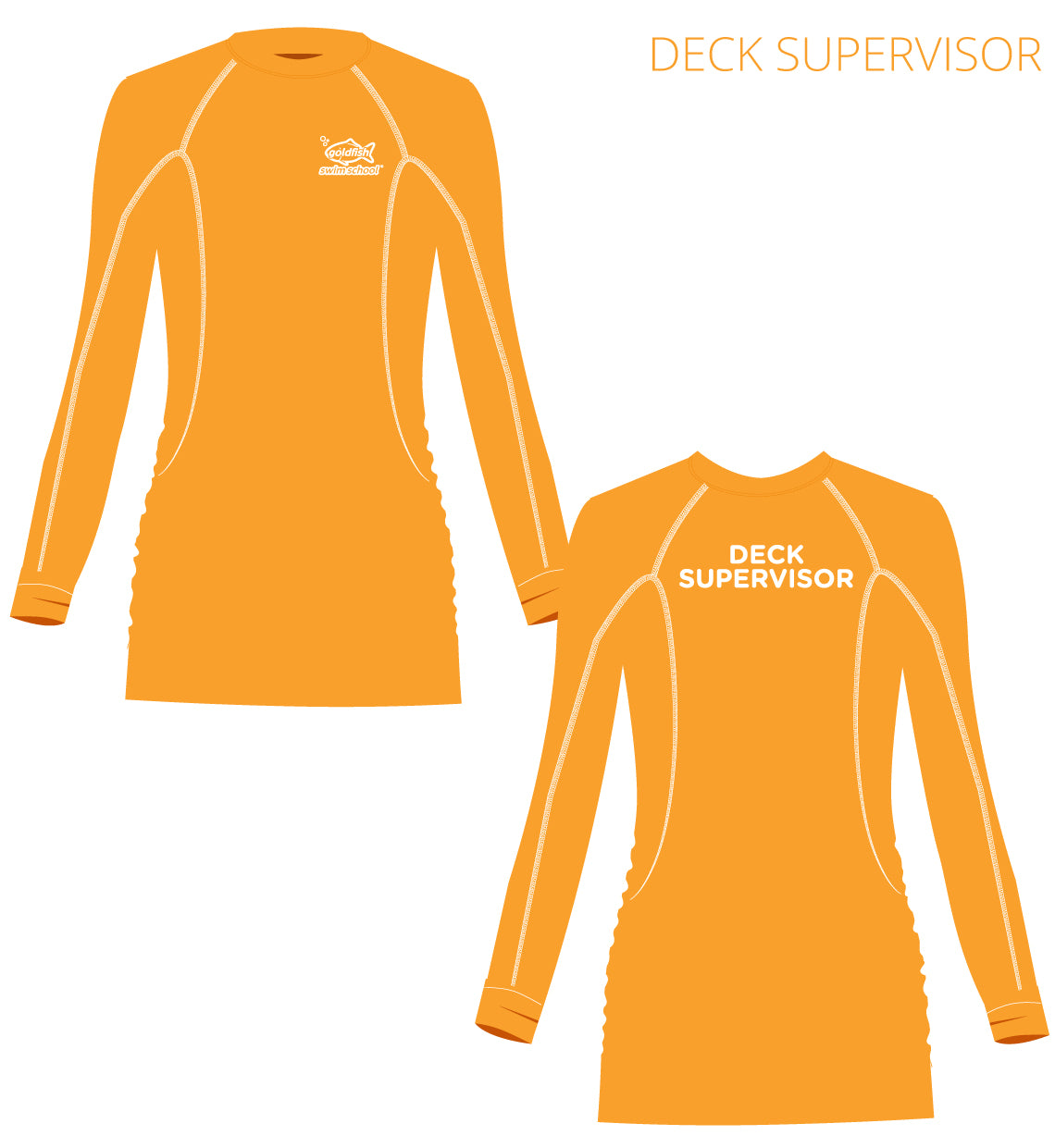 - Select size and then select from 3 logo types: INSTRUCTOR, DECK SUPERVISOR or SWIMOLOGIST